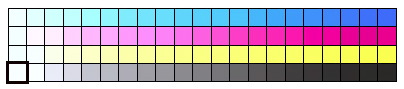 Il limite si stabilisce stampando (con limiti al 100%) un target simile a uno di questi qui sotto (la forma effettiva varia da software a software e da strumento a strumento), che contiene una strisciata con varie percentuali per ogni colorante.